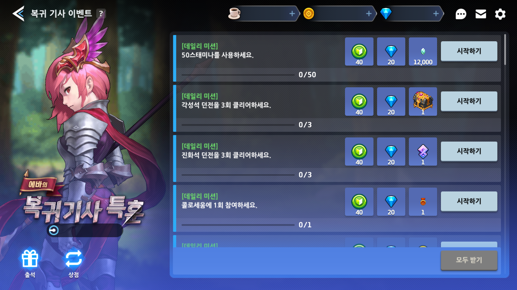 Ainda tem mais? Até 28/09, mais uma edição do treinamento especial da Eva para cavaleiros retornantes estará ativo aos jogadores que não se conectaram nos últimos 14 dias, te dando vários recursos num check-in diário especial e uma loja de recursos maravilhosos por moedas especiais obtidas nas missões do evento.