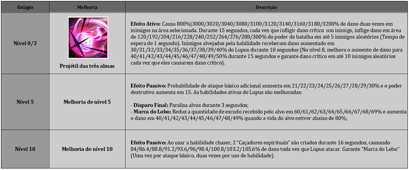 Estará ativo também o evento Energia da Mudança para o Lupus, onde ao invocar no banner da personagem, você receberá 1 item de mesmo nome do evento e trocá-los por prêmios na loja especial.