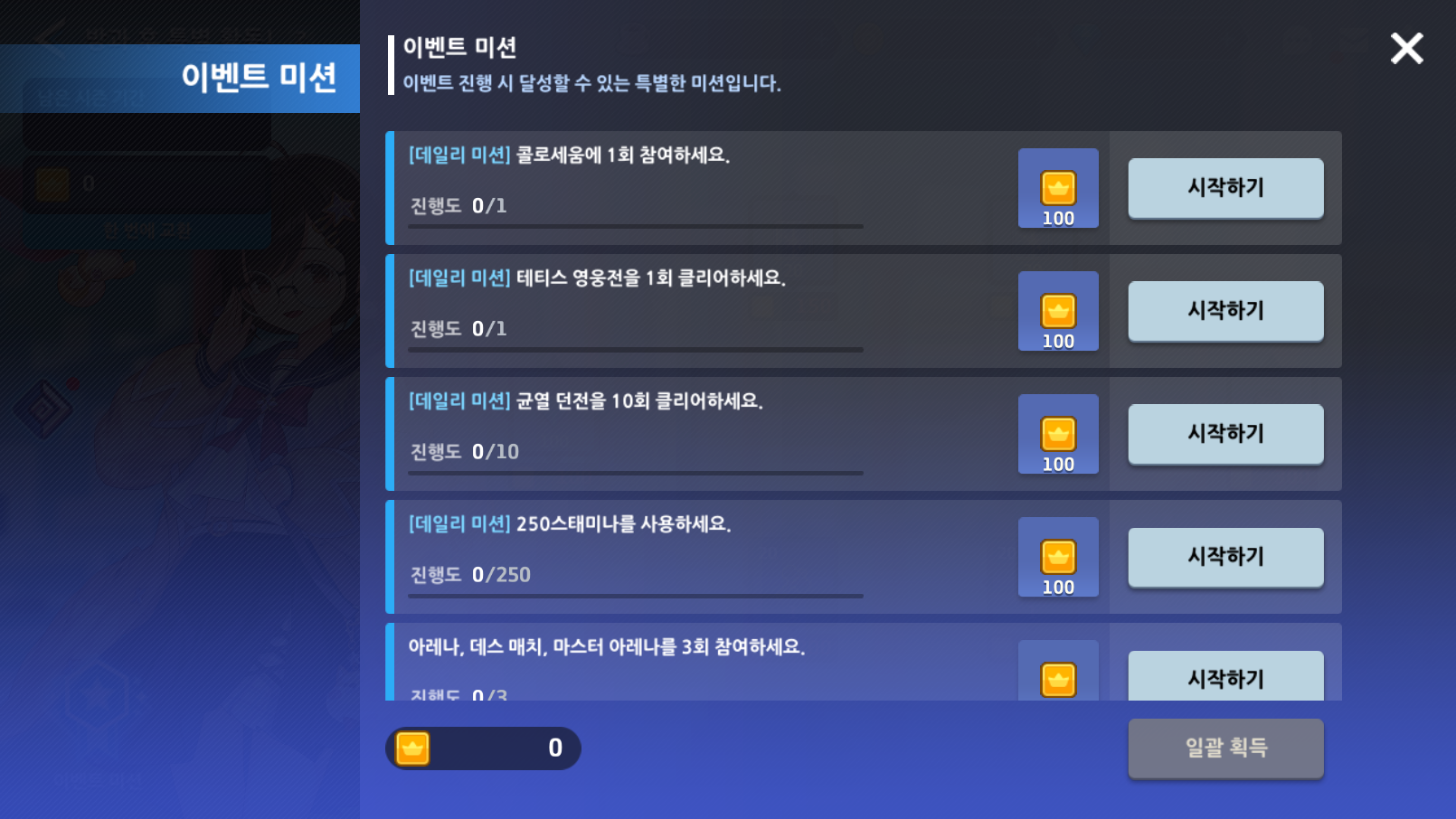 Desafio Pontos Recebidos Primeira Conclusão do Estágio (Campanha principal, história secundária ou história curta) 150 Primeira Conclusão do sub-estágio da campanha principal 100 Primeira Conclusão da história secundária no modo desafio Conclusão de Rachadura Conclusão de Labirinto (Normal e elementos) Conclusão dos Contos dos Heróis de Tetis (Limpeza) Jogar o Coliseum 60 Jogar o calabouço de pedras de despertar (Proporcional ao nível jogado) 180