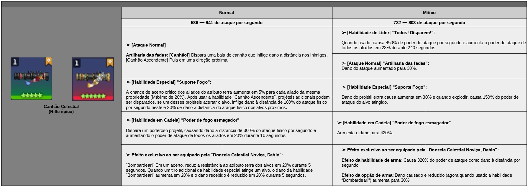 Efeito de grupo: Chance de Crítico + 40% (Após o rank "Mítico": Chance de Crítico + 40% / Dano Crítico + 20%)