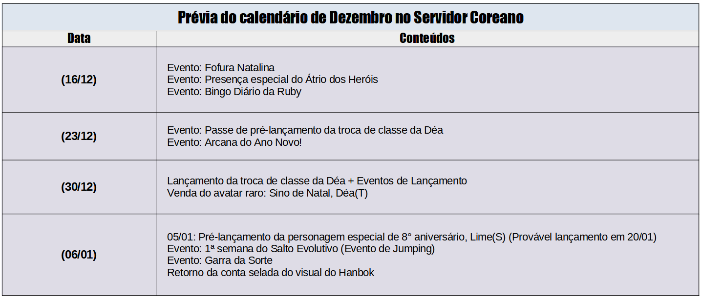 Fala minhas pipoquinhas de morango! Mais uma semana que foi junto com a minha alma após essa madrugada e trazemos para vocês as novidades do Servidor Coreano para o final desse ano! Com uma novidade que nem eu estava esperando ~~ Tudo publicado no site oficial do jogo nessa sexta-feira.