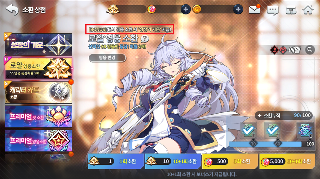 Estará ativo também o evento Energia da Mudança para a Edel, onde ao invocar no banner da personagem, você receberá 1 item de mesmo nome do evento e trocá-los por prêmios na loja especial.