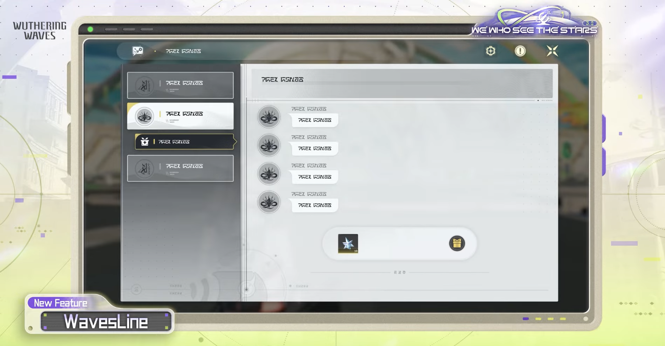 ➣ WavesLine: Um sistema que nos permite trocar mensagens com personagens e aceitar missões. Algumas interações nos darão Astrites de recompensa. Poderemos customizar a interface do celular e bolhas de falas.