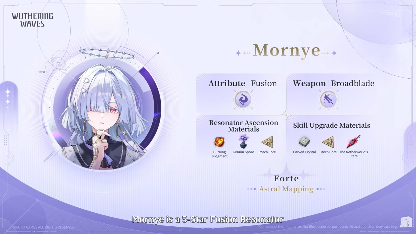 Mornye possui a função de suporte, possuindo a habilidade de comandar suas criações mecânicas de maneira precisa. Ela pode providenciar cura e buffs para os aliados, os buffs que ela providencia irão variar dependendo da aplicação da nova mecânica de Off-Tune.
