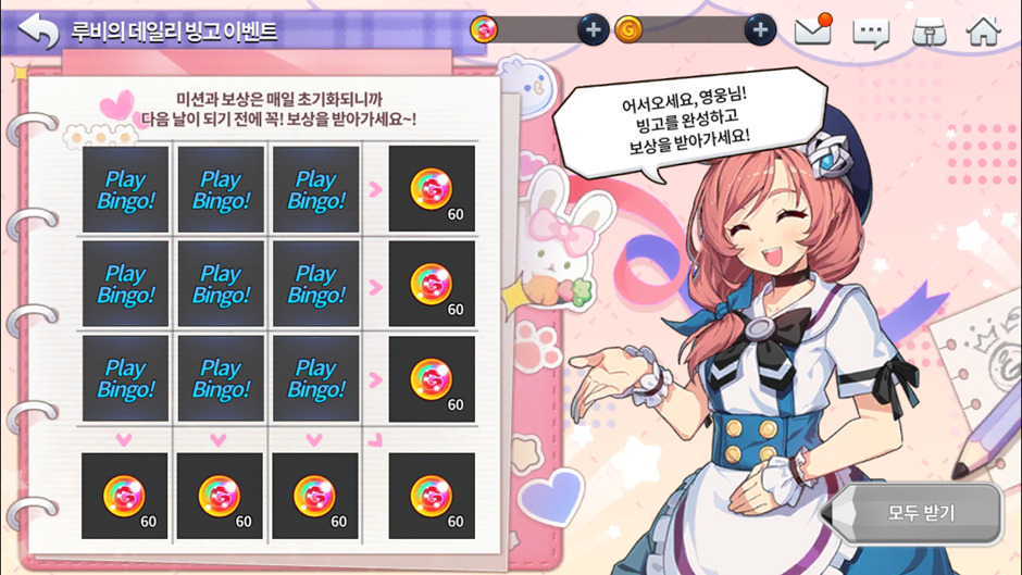 E por fim, teremos neste período o Bingo Diário da Ruby, te dando até 600 gemas diárias ao completar as missões da cartela 3x3!