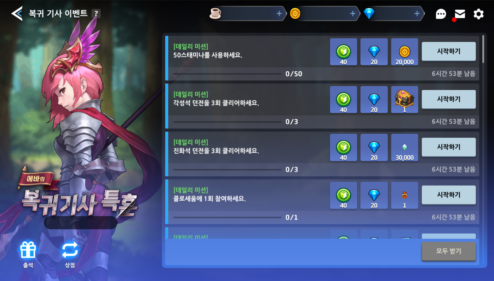 Jogadores retornantes e novos poderão aproveitar muitos eventos que darão vários recursos para curtirem sua experiência com a nova fase do jogo! Até 02/04, o jogador que não se conectou nos últimos 56 dias ativará o Treinamento especial da Eva para cavaleiros retornantes e o Login especial para novatos.