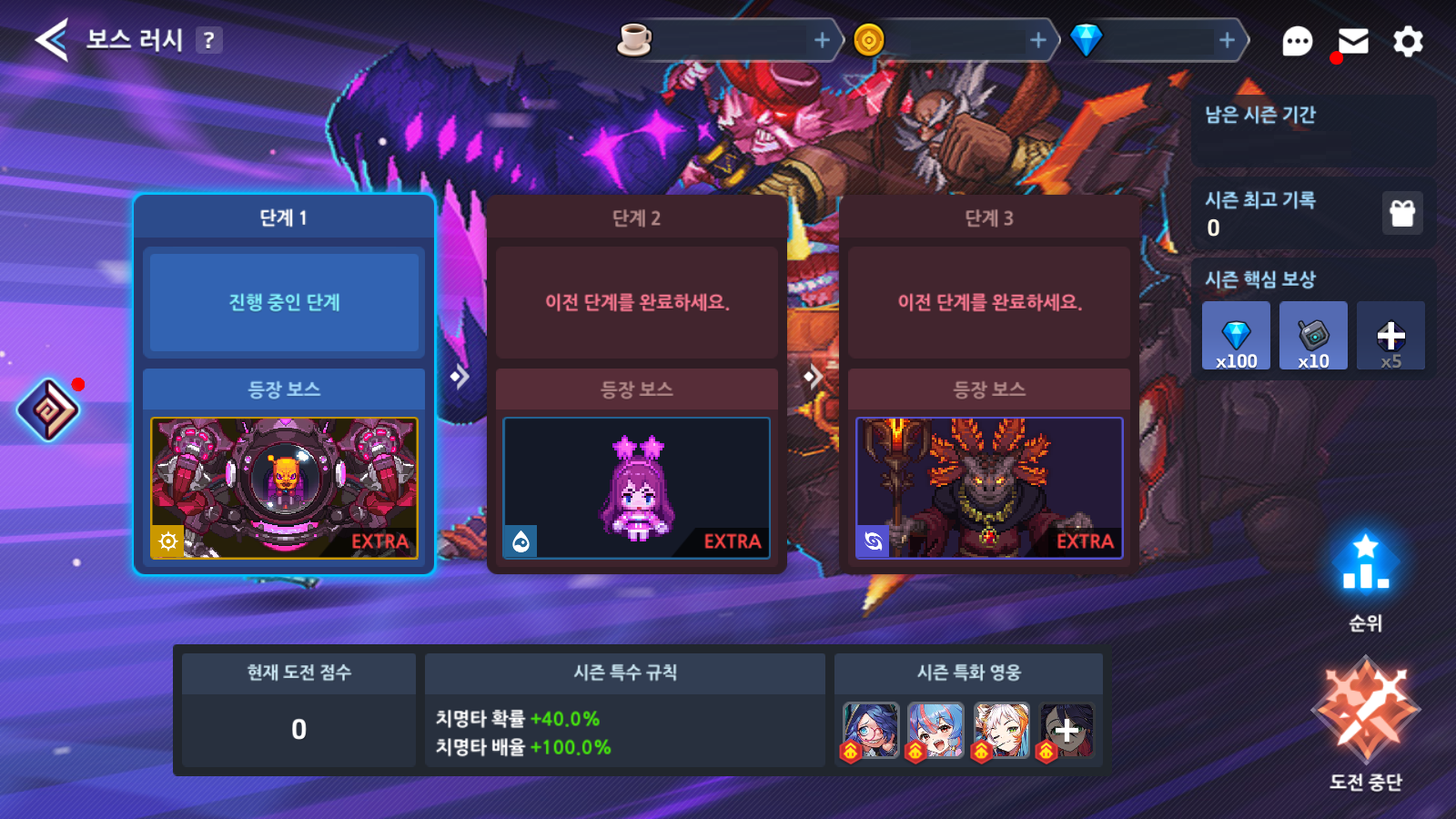 Até o dia 22/01, você pode participar da primeira temporada do evento desafiando até 3 chefes sequencialmente e recebendo prêmios dependendo da sua pontuação cumulativa nos três estágios.