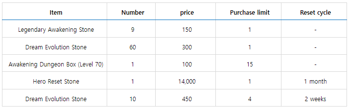 Alguns produtos da loja como Pedras de Despertar Lendárias terão seu número de aquisições dobrado e a quantidade de pedras de despertar terão sua quantidade aumentada por venda: