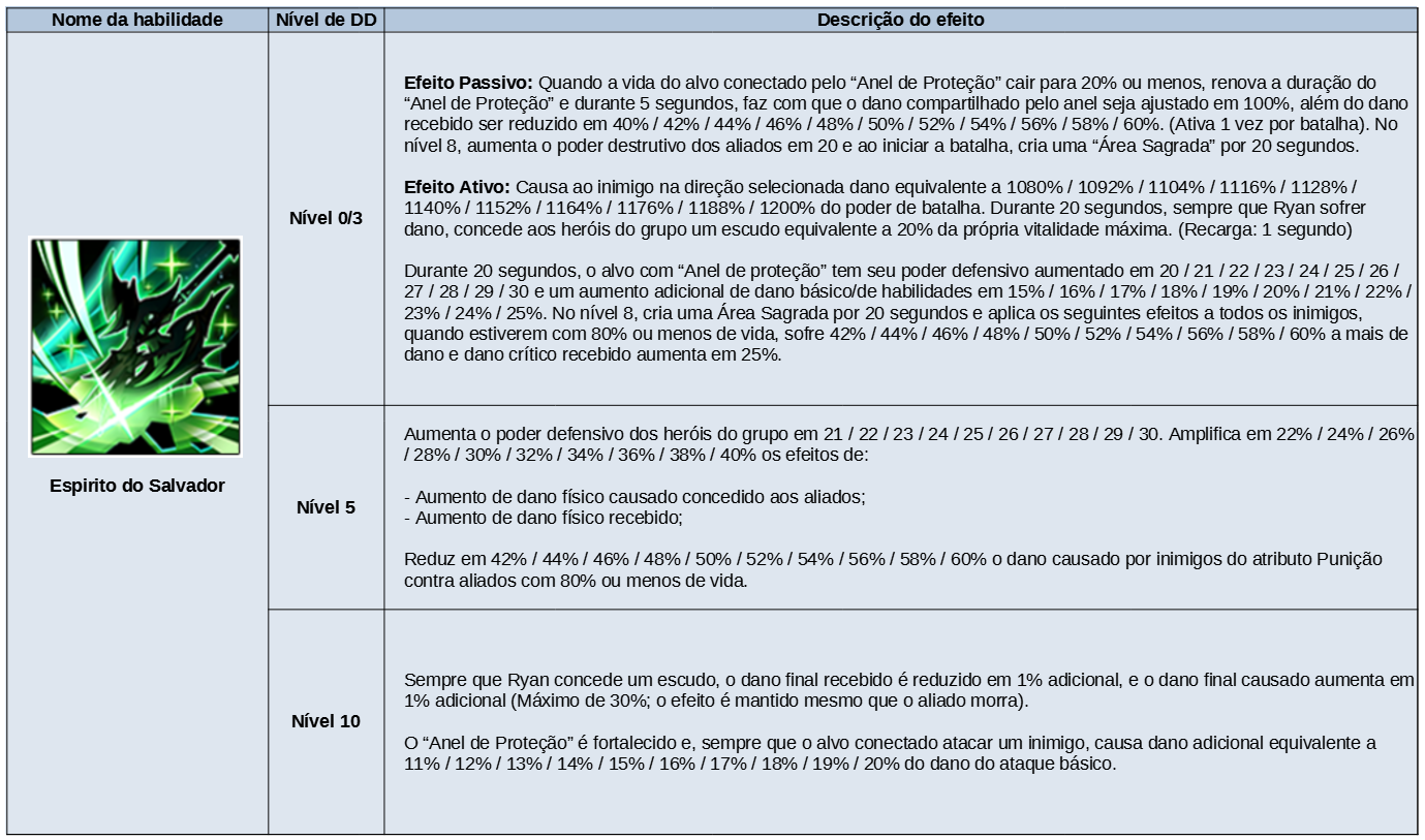 Produto Limite de compra Custo de pontos Lobby do recorte de habilidade do Advento: Ryan 1 17000 1 cópia SR do Ryan 1 7000 125 Cristais divinos 10 850 50 Cubos de Crescimento 5 1500 (Não negociável) Ticket de recompensa do Martelo de Ernasis 60 450 100 Graças das três deusas de Ernas 9 280 100 tickets de acessórios 20 400 100000 Ouro Sem Limite 10
