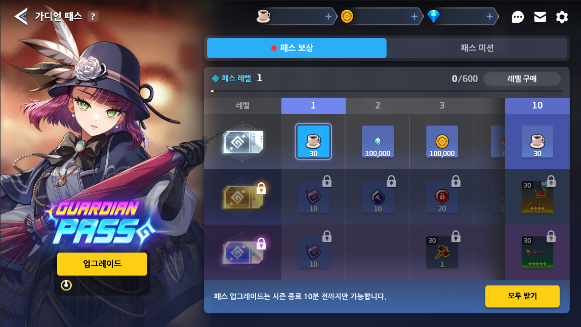Anna também estampa o novo Passe do Guardião até 16/10 e o jogador pode obter vários prêmios desbloqueando os 30 níveis do passe sequencialmente ao coletar pontos especiais do evento através de missões do mesmo. Lembrando que ao adquirir o Passe Dourado ou o Passe platina, você desbloqueia premiações adicionais além das premiações do nível de passe anterior.