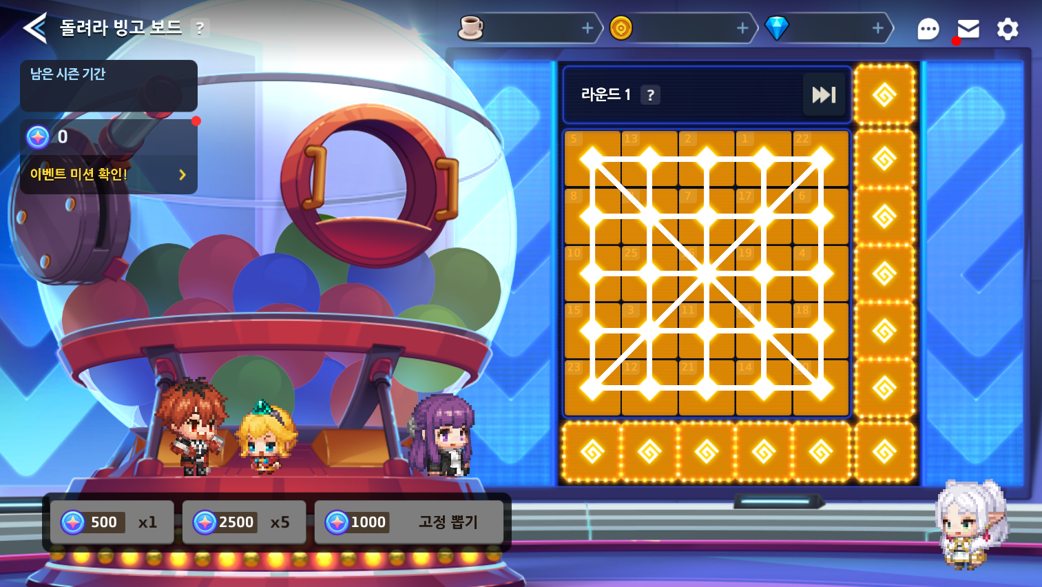 Teremos uma nova edição do Vamos brincar de bingo! até 23/01, onde jogando vários modos do jogo, você pode obter pontos que podem ser sorteados na cartela, resgatando prêmios dependendo das linhas, colunas ou casas completadas. Caso desejar, você pode partir para a próxima cartela caso obter todos os prêmios desejados.