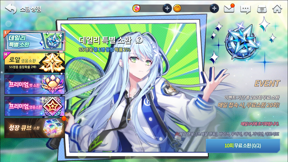 Até 06/05, você pode ativar a Invocação Diária Especial. Ela te permitirá girar 20 vezes por dia nesse banner durante 14 dias corridos a partir do primeiro login feito em sua conta durante a ativação do evento, te dando a oportunidade de conseguir vários heróis, incluindo o Brammashell que está incluso na lista de personagens disponiveis no banner.