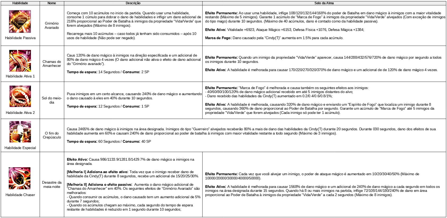 Informações das habilidades e Selo da Alma da "Paleógrafa, Cindy(T)":