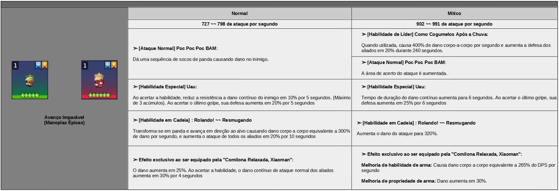 Efeito de grupo: Dano corpo-a-corpo + 50% (Após o rank "Mítico": Dano corpo-a-corpo + 55%)