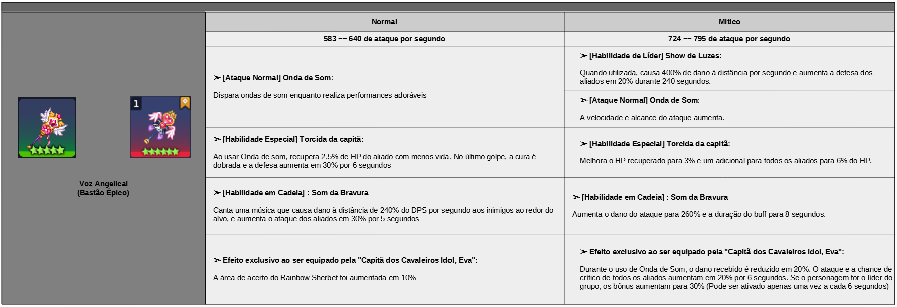 Efeito de grupo: Dano do atributo básico + 50% (Após o rank "Mítico": Dano do atributo básico + 55%)