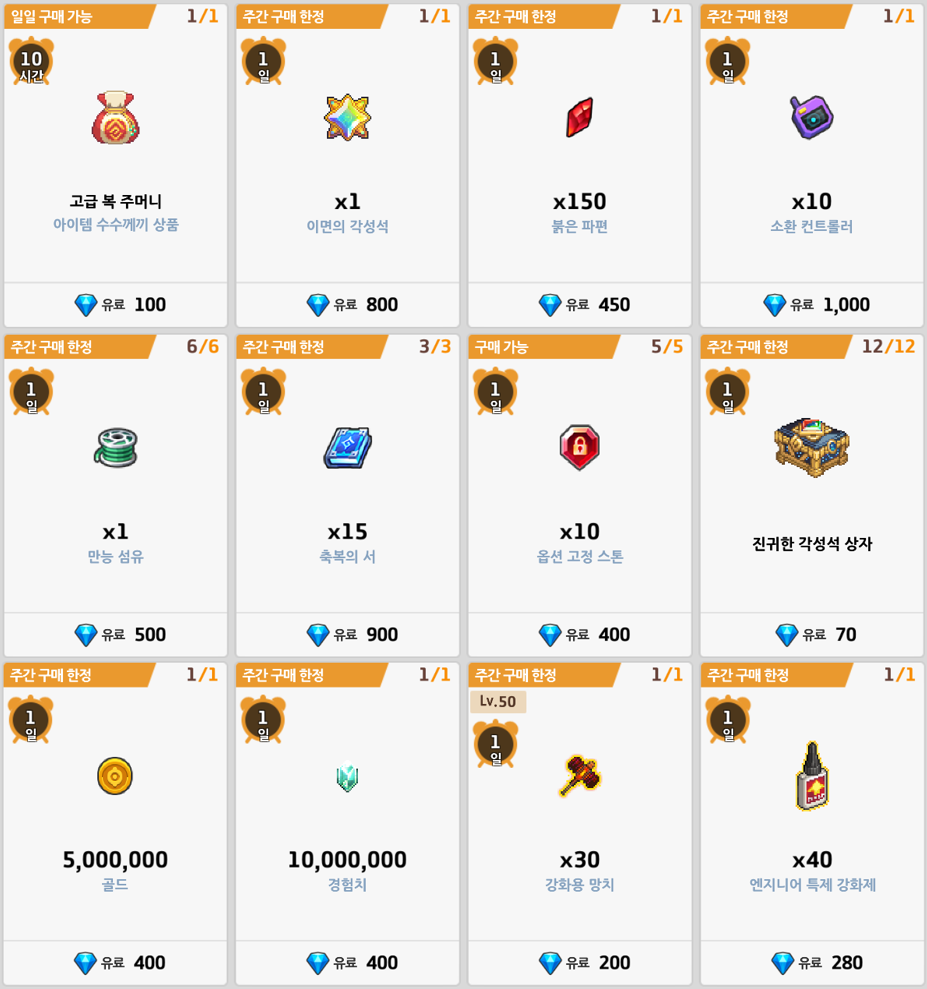 Tipo de Item (Bolsa da Sorte Premium) Taxa de Aparição Martelo de Transcendência Épico x1 0,4% Fragmentos Vermelhos x100 24,9% Cristal de Herói x16 24,9% Controlador de Convocação x1 24,9% Energia x150 24,9%