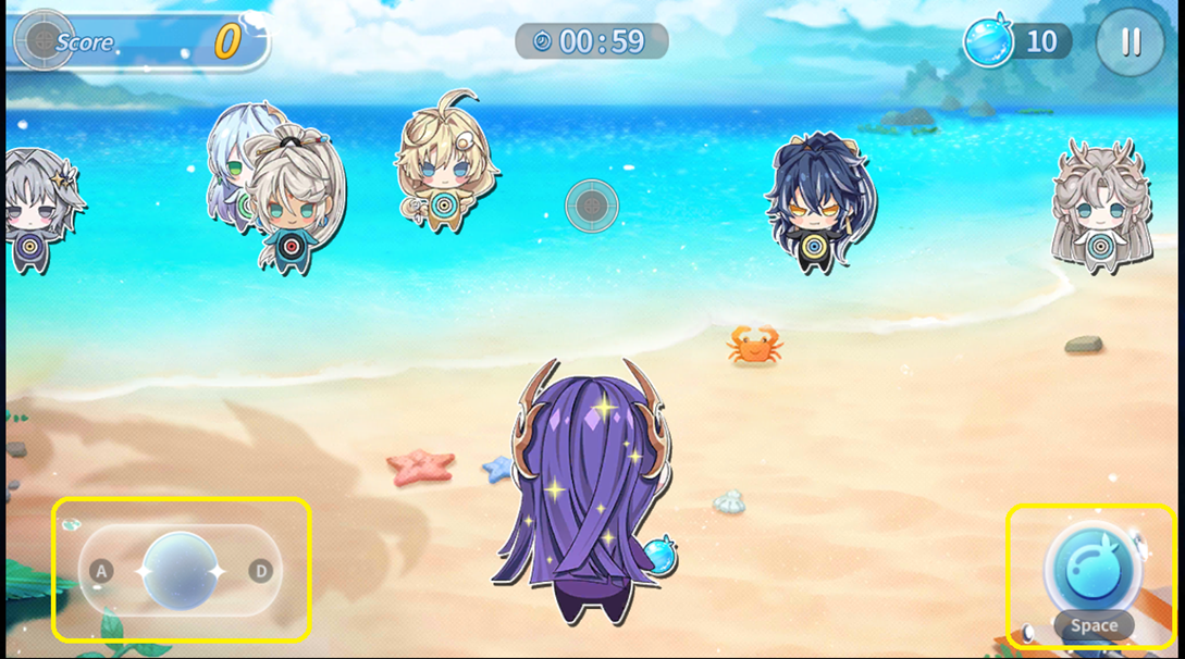 O mini-game como o próprio nome sugere, consiste de você atirar balões de água nos alvos que se movem de um lado para o outro dentro de 1 minuto. Quanto mais alvos atingir, maior será sua pontuação.