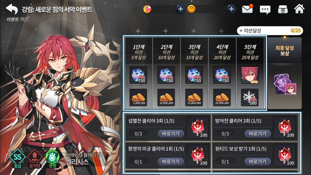 As recompensas dependerão da sua pontuação diária e cumulativa durante o evento. Por dia, você pode obter até 150 energias (Caso atinja até 450 pontos) e durante o evento, você pode receber vários recursos que 1 ticket de invocação de herói SR.
