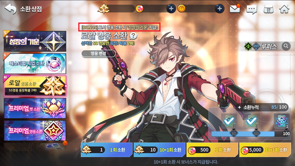 Estará ativo também o evento Energia da Mudança para o Lupus, onde ao invocar no banner da personagem, você receberá 1 item de mesmo nome do evento e trocá-los por prêmios na loja especial.