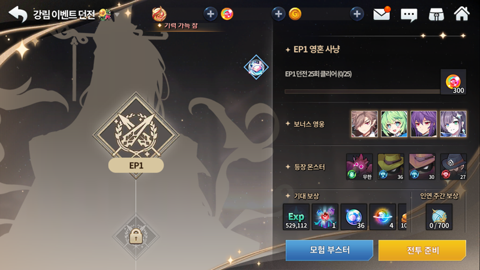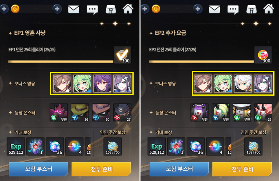 Assim como nos eventos de história,caso jogar com personagens bônus em seu time, receberá até 50% de pontos extras dependendo de quantos heróis bônus você tenha incluso. Importante frisar que cada calabouço tem um time específico do evento e aqui, você poderá também completar missões de repetição de calabouço como teste de troca de classe, evolução colossal e até mesmo missões de advento.