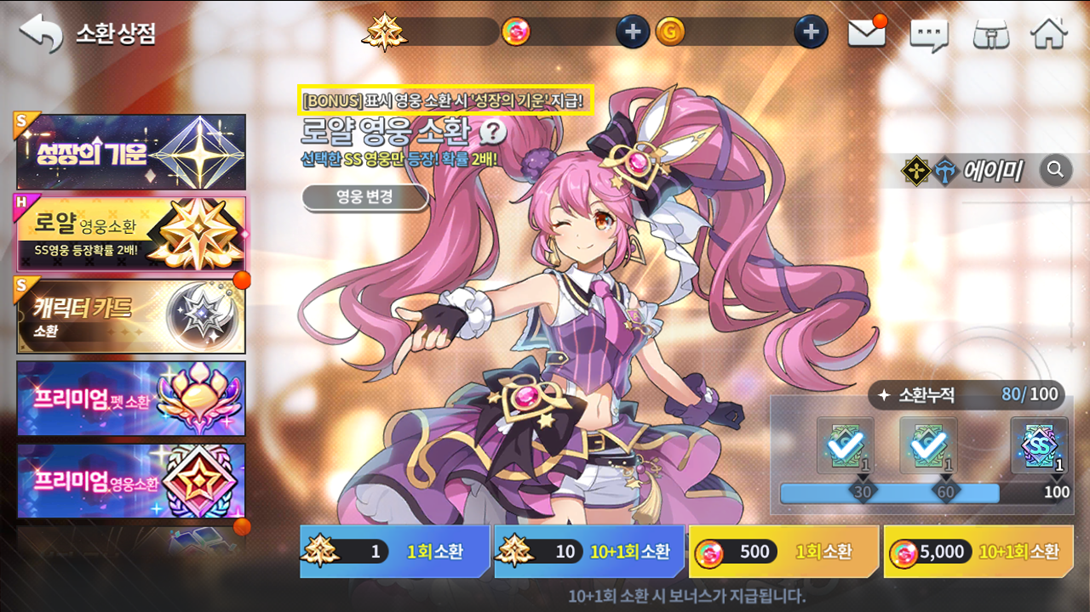 Estará ativo também o evento Energia da Mudança para a Amy, onde ao invocar no banner da personagem, você receberá 1 item de mesmo nome do evento e trocá-los por prêmios na loja especial.