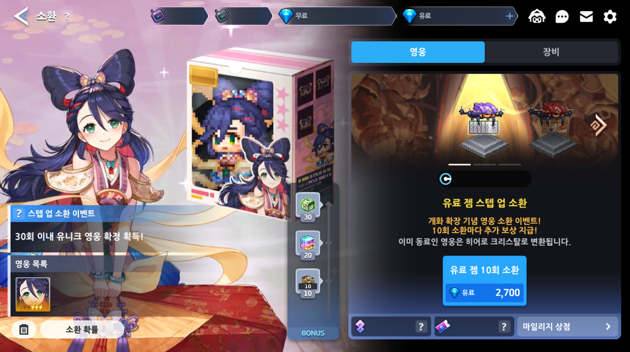 Dabin também terá um evento especial de convocação até 27/11 onde ao realizar convocações com joias pagas, receberá garantido o personagem em destaque ao obter um herói NT5 e vários prêmios dependendo da quantidade de convocações feitas: