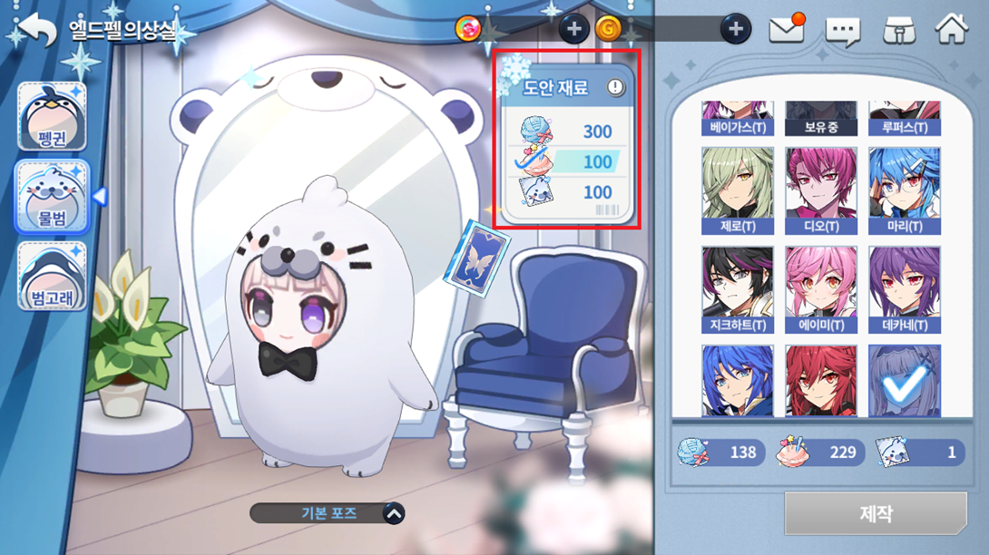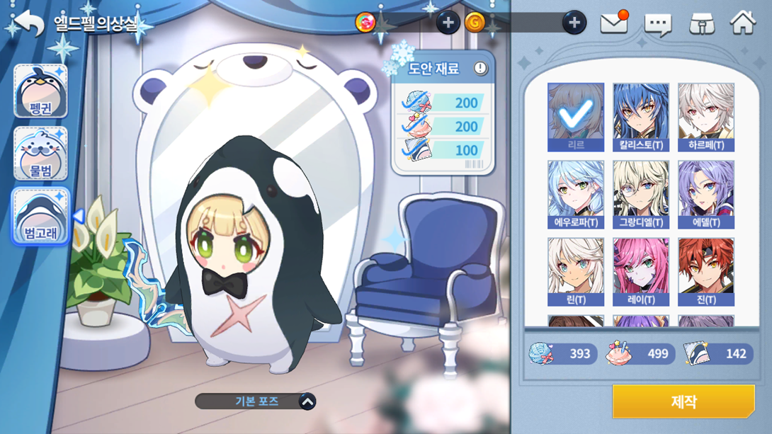A segunda modalidade é o Vestuário de Eldepel, uma loja especial que você pode criar 3 novos avatares especiais de Grand Fábula (Foca, Baleia e Pinguim) para os personagens disponíveis, utilizando itens especiais que podem ser obtidos aleatoriamente ao concluir qualquer calabouço.