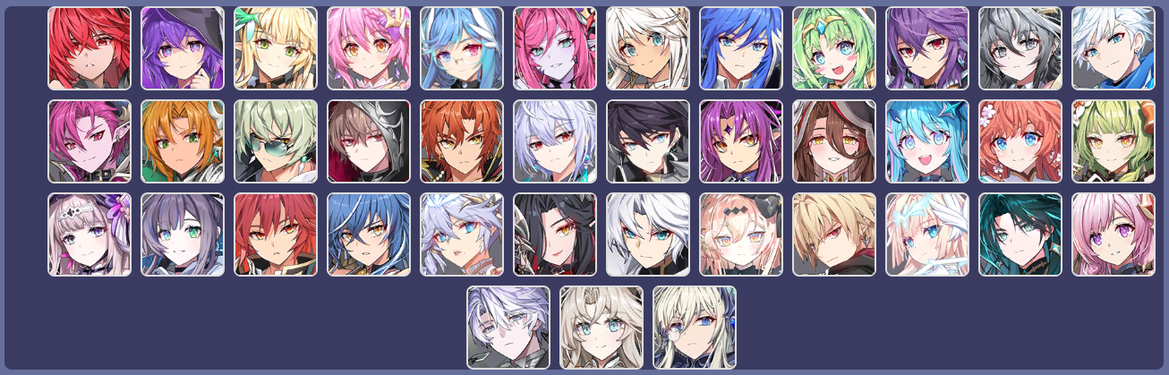 Lista de personagens disponíveis: