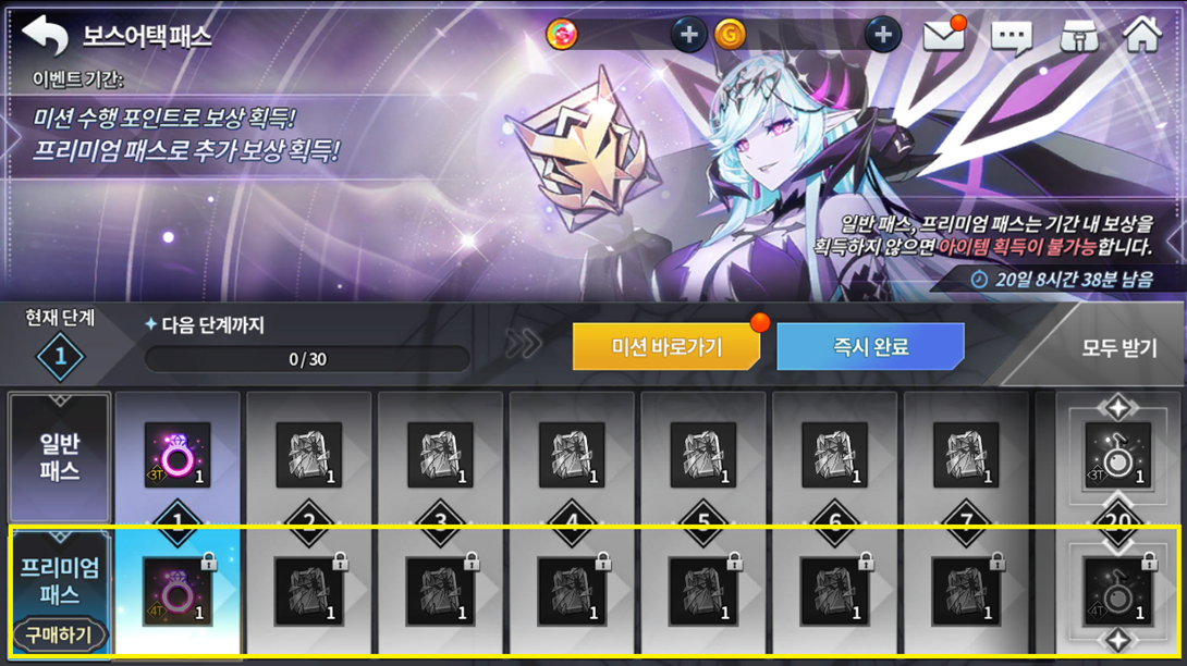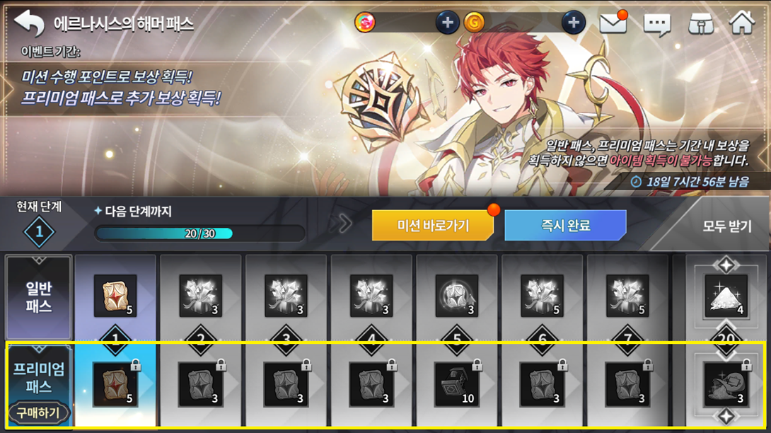 Cada missão completa é 1 recompensa respectiva e ao completar todo o quadro, você recebe 1 ticket de invocação de herói SR 5 estrelas selecionável.