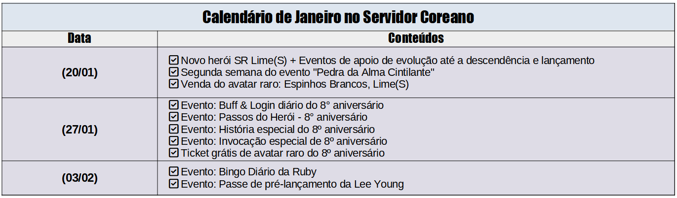 Fala meus Sucrilhos com leite condensado! Mais uma semaninha que desce que nem a minha pressão, vai pro saco, e trazemos para vocês as novidades do Servidor Coreano para a próxima terça-feira! Publicadas pela desenvolvedora nessa madrugada de sexta-feira em seu site oficial!