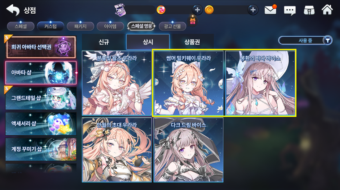 Os avatares Verão Estrelado da Urara e Oceano do sonhar da Vice estarão a venda na loja permanente de customizações