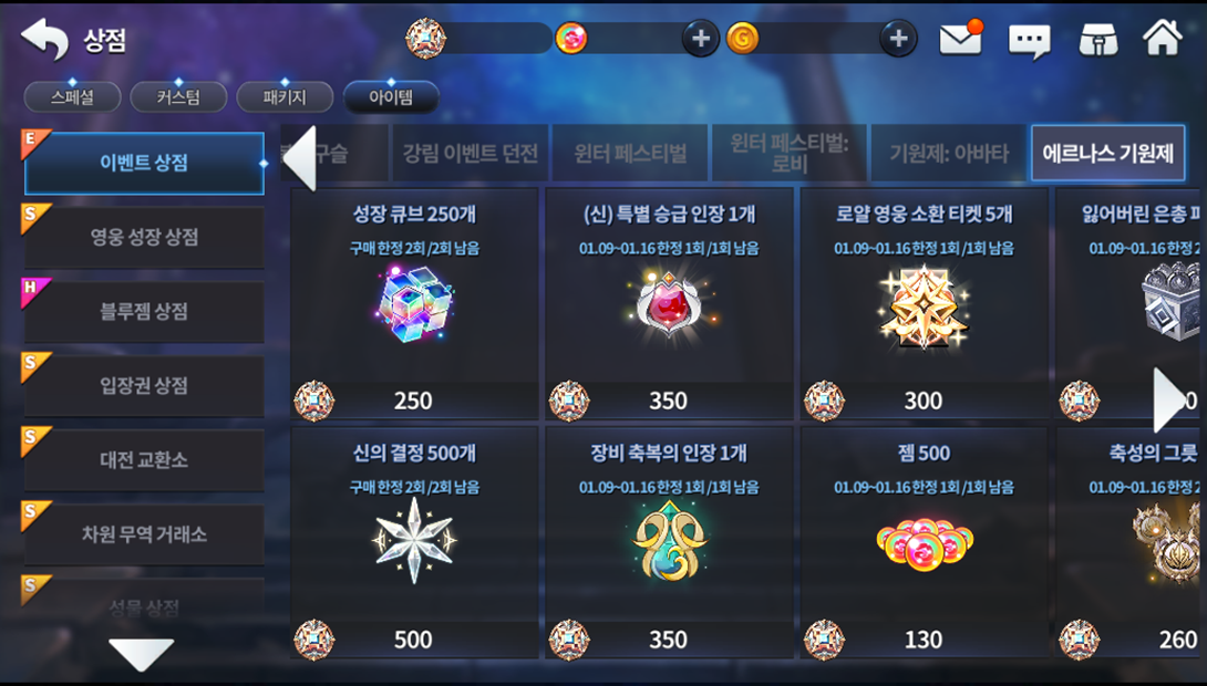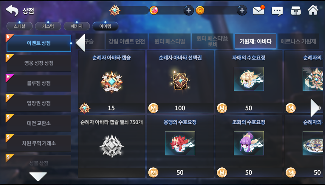 Até 26/01, você poderá obter ao consumir energia as moedas da peregrinação e trocá-las por vários prêmios na loja do evento. Lembrando que você recebe 3 moedas ao concluir calabouços que consumam 12 energia por ida e 2 moedas ao concluir calabouços que consumam 8 energia.