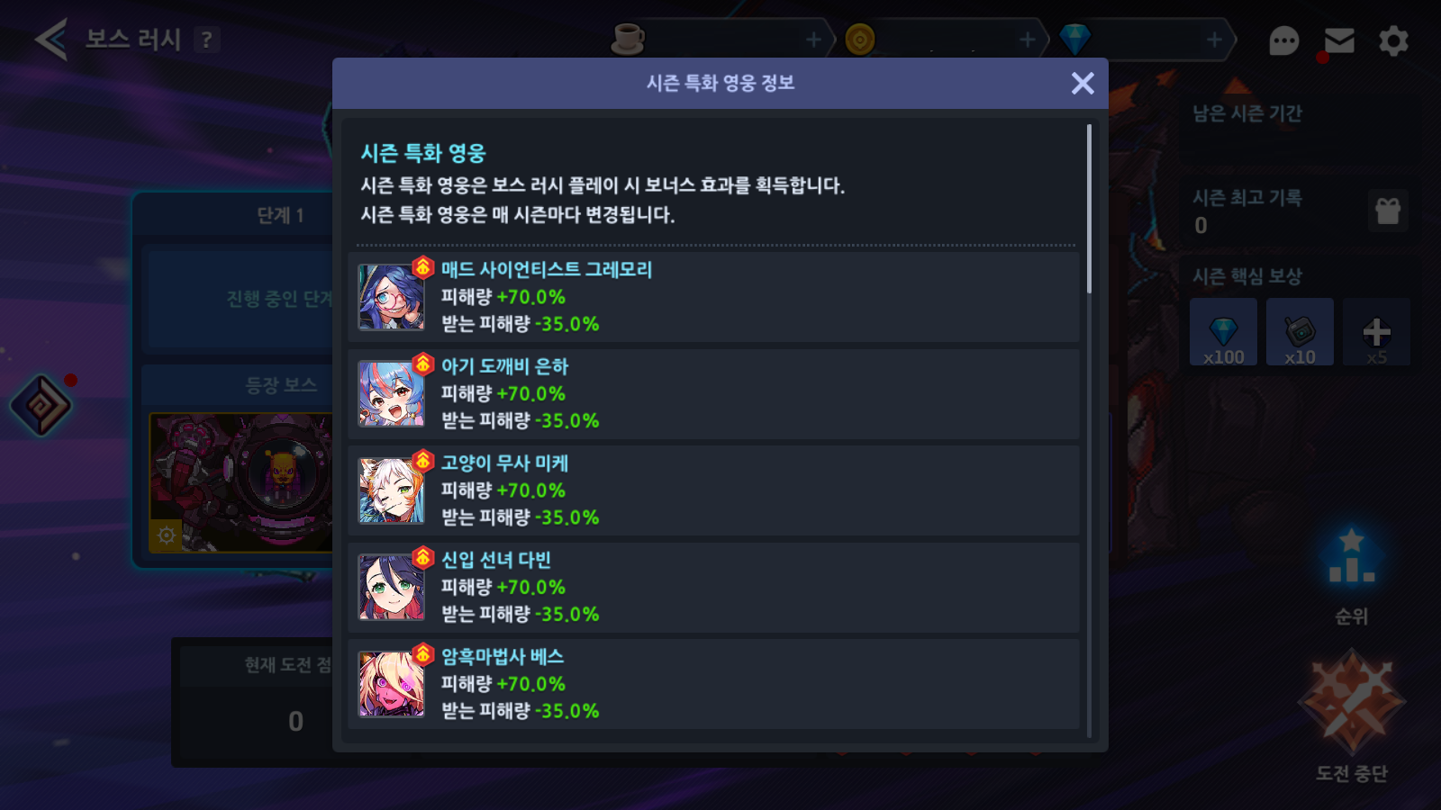 Alguns heróis de temporada terão dano aumentado no desafio respectivo durante o período do evento.