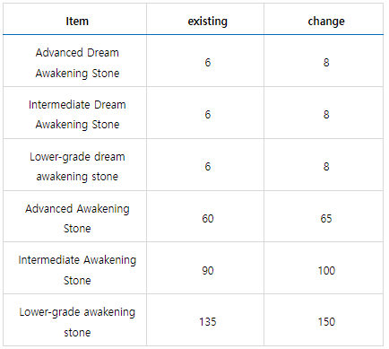 Alguns produtos da loja como Pedras de Despertar Lendárias terão seu número de aquisições dobrado e a quantidade de pedras de despertar terão sua quantidade aumentada por venda: