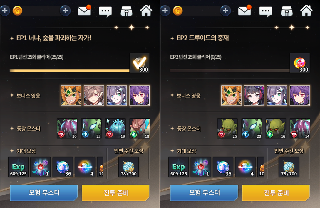 Assim como nos eventos de história,caso jogar com personagens bônus em seu time, receberá até 50% de pontos extras dependendo de quantos heróis bônus você tenha incluso. Importante frisar que cada calabouço tem um time específico do evento e aqui, você poderá também completar missões de repetição de calabouço como teste de troca de classe, evolução colossal e até mesmo missões de advento.