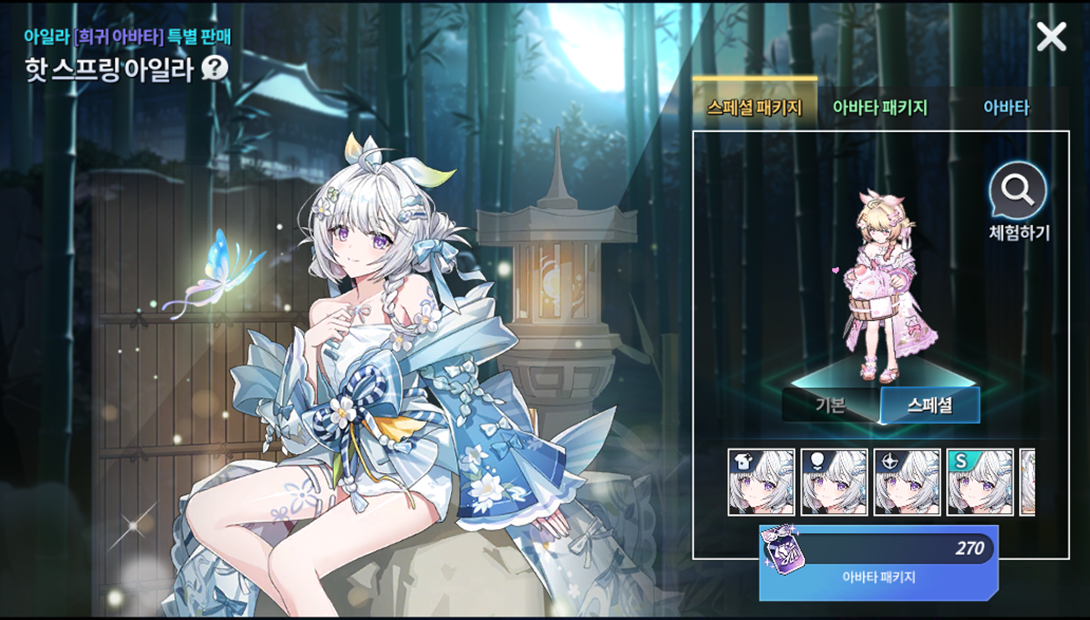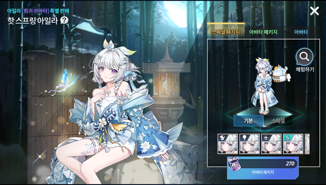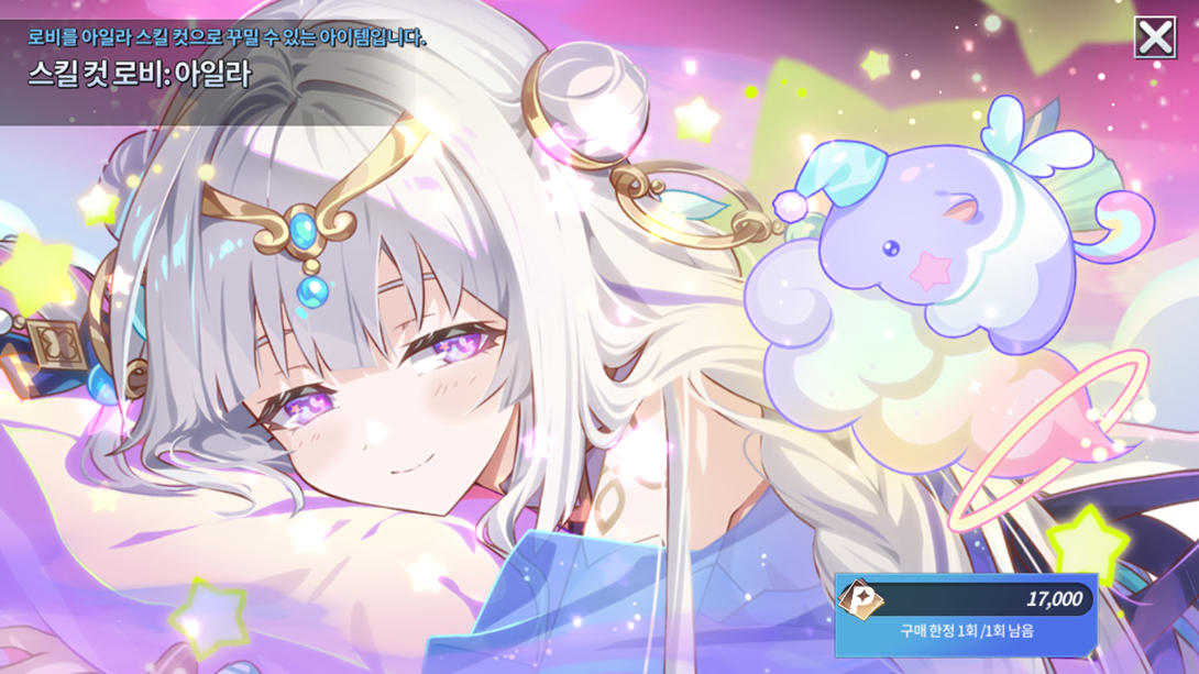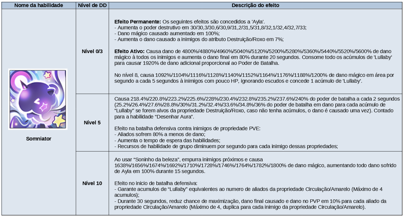 Produto Limite de compra Custo de pontos Lobby de Habilidade: Ayla 1 17000 Lobby de Advento: Ayla 1 Cópia 5 estrelas do herói SR Ayla 1 7000 1 ticket de avatar selecionável da Ayla da Grand Fábula 1 4000 50 Cubos de Crescimento 5 1500 (Não negociável) Ticket de recompensa do Altar do Tempo 60 450 100 Graças das três deusas de Ernas 9 280 100 tickets de acessórios 20 400 100000 Ouro Sem Limite 10