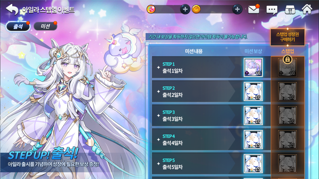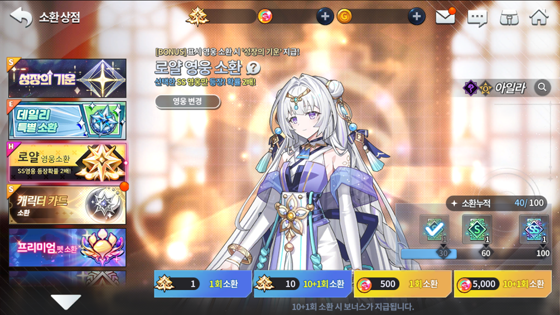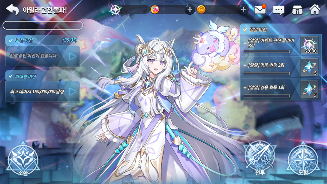 Até 11/05, você pode ativar a Invocação especial diária e durante 15 dias corridos a partir do primeiro login, realizar 20 invocações gratuitas por dia e obter vários heróis, com exceção de trocas de classe, personagens especiais, Ayla, Metatron, Myriel, Iyoung, Arsad e Gaian.