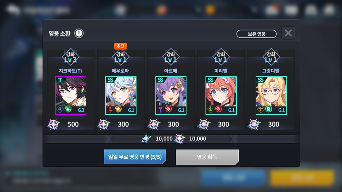 ➢ Alteração para que heróis SR e T obtidos recentemente apareçam primeiro no inventário de heróis;
