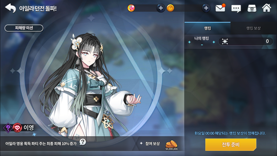 Ao conquistar a equipe desejada, você irá desafiar a Iyoung para escalar no ranking, recebendo recompensas por dano causado no processo. Dependendo do seu ranking semanal e da sua pontuação, você receberá diversos prêmios. Lembrando que quanto mais a Ayla estiver evoluída no evento, maiores serão os buffs dados a equipe neste modo.