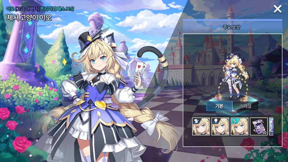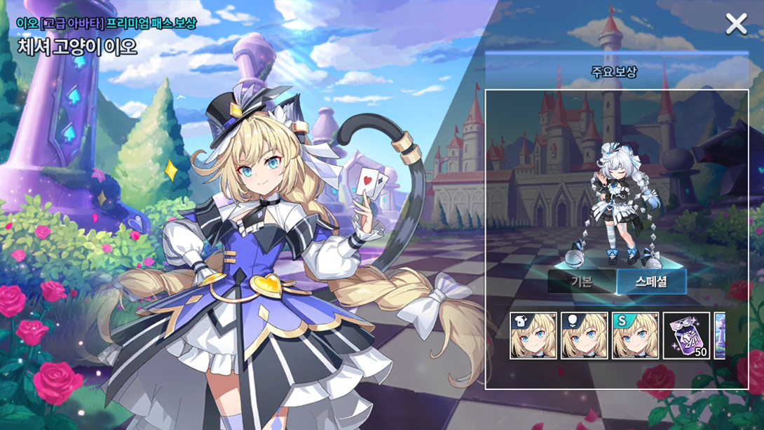 Nível Recompensa Passe Comum Recompensa Passe Premium 1º Nível 50 cupons de acessório Avatar "A Gata de Cheshire, Io" 2º Nível 15 chaves selecionáveis da Grand Fábula 75 chaves selecionáveis da Grand Fábula 3º Nível 50 cupons de acessório 75 chaves de conta selada 4º Nível 15 chaves de conta selada 75 chaves de conta selada 5º Nível 5 cupons de avatar Ilustração "A Gata de Cheshire, Io" 6º Nível 50 cupons de acessório 75 chaves selecionáveis da Grand Fábula 7º Nível 15 chaves selecionáveis da Grand Fábula 75 chaves selecionáveis da Grand Fábula 8º Nível 50 cupons de acessório 75 chaves de conta selada 9º Nível 15 chaves de conta selada 75 chaves de conta selada 10º Nível 5 cupons de avatar Avatar "A Gata de Cheshire, Io Especial" 11º Nível 100 cupons de acessório 150 chaves selecionáveis da Grand Fábula 12º Nível 30 chaves selecionáveis da Grand Fábula 150 chaves selecionáveis da Grand Fábula 13º Nível 100 cupons de acessório 150 chaves de conta selada 14º Nível 30 chaves de conta selada 150 chaves de conta selada 15º Nível 5 cupons de avatar 50 cupons de avatar 16º Nível 100 cupons de acessório 150 chaves selecionáveis da Grand Fábula 17º Nível 30 chaves selecionáveis da Grand Fábula 150 chaves selecionáveis da Grand Fábula 18º Nível 100 cupons de acessório 150 chaves de conta selada 19º Nível 30 chaves de conta selada 150 chaves de conta selada 20º Nível 10 cupons de avatar Lobby: Checkmate (Caso você já o possua, receberá 100 cupons de avatar no lugar)