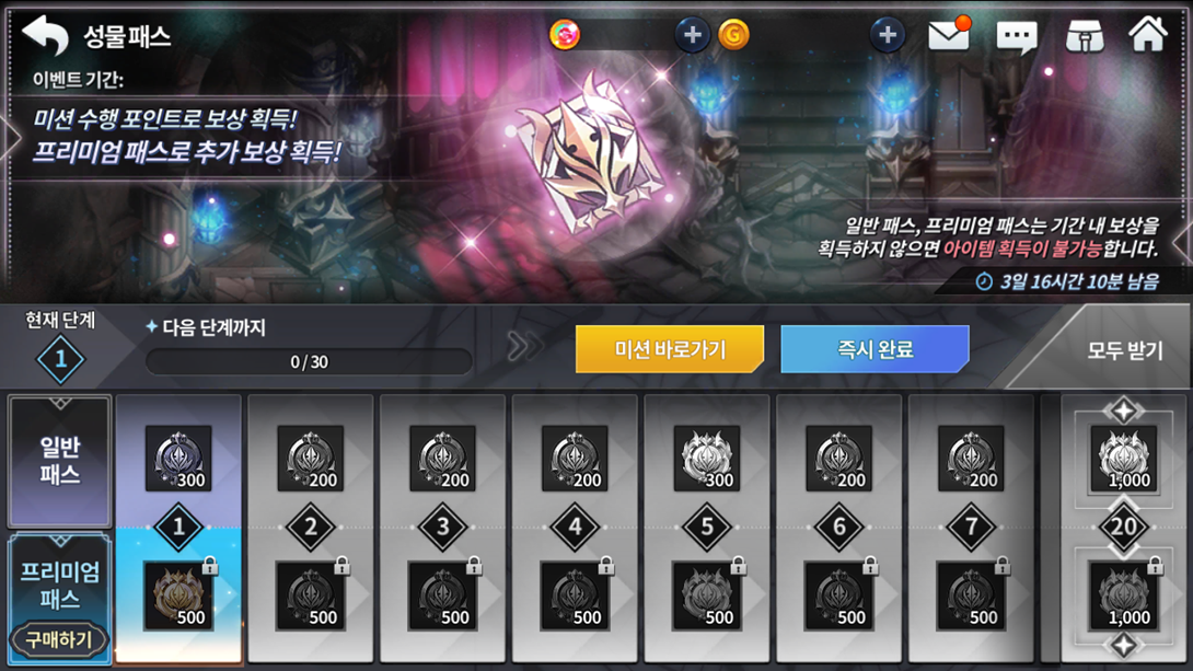 Até 04/05, teremos 3 novas edições dos Passes de Reliquia Sagrada, Ataque aos Chefes e Martelo de Ernasis! Cada um com 20 níveis de premiações sequenciais desbloqueáveis com 30 pontos cada. Estes pontos sendo obtidos em missões especiais do evento.