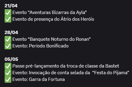O mês de Abril segue bem light e eu já to desesperado por causa da próxima troca de classe! Então bora conferir o que tá chegando nas próximas atualizações automáticas desse mês~~