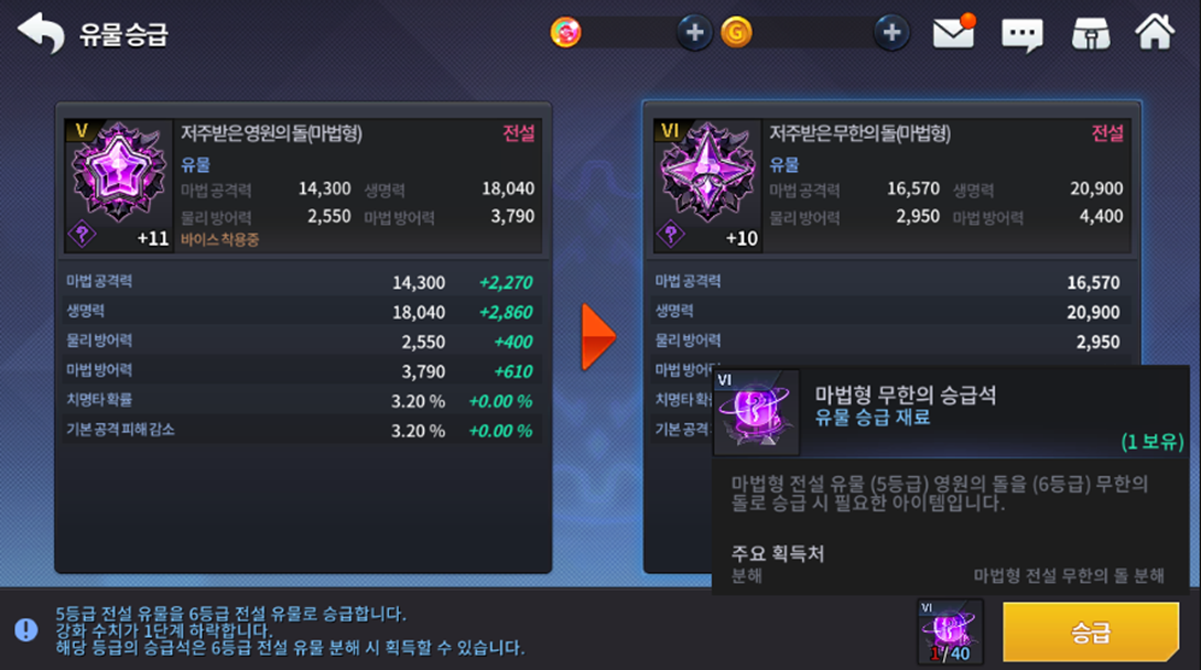 ➢ Adicionada as pedras de promoção infinita (5 Adquiridas ao desmanchar reliquias de nível 6 em qualquer nivel de refino. 15 fragmentos para promover reliquias do nivel 10, 40 do nivel 11 e 150 do nível 12);