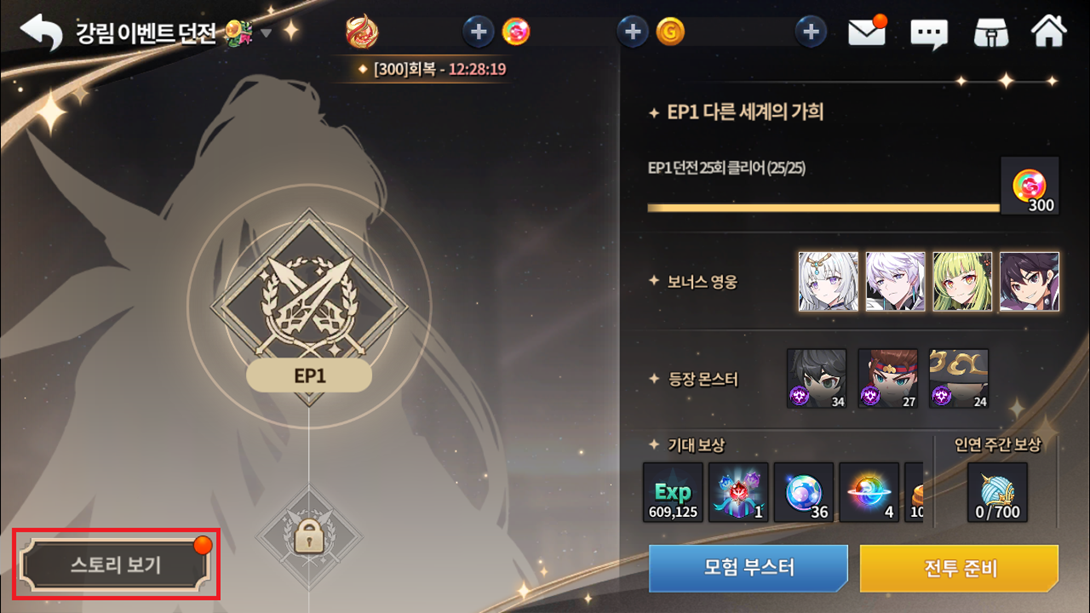As duas histórias podem ser percorridas cada uma com seu próprio método de desbloquear cada capítulo: No evento de história padrão, você deve conseguir pontos do evento que são obtidos ao concluir qualquer um dos 4 calabouços de história do evento (2,200 > 2,600 > 3,000 > 3,400 de pontos respectivamente para abrir cada capítulo). Enquanto no de descendência, você desbloqueia cada capitulo a cada 25 idas concluídas no minimo por calabouço. Em ambos, receberá 300 gemais por cada capitulo aberto e lido.
