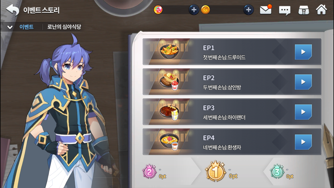 Assim como nos eventos de história, você ganha pontos por cada energia consumida durante esse período. Lembrando que nesse tipo de evento, automaticamente você recebe 50% a mais de pontos por energia consumida (Ou seja, se você gasta 12 energias, recebe 18 pontos e 8 energias, recebe 12). Ao desbloquear sequencialmente cada capitulo da história com os pontos obtidos, você recebe 300 gemas por cada capitulo aberto e lido.